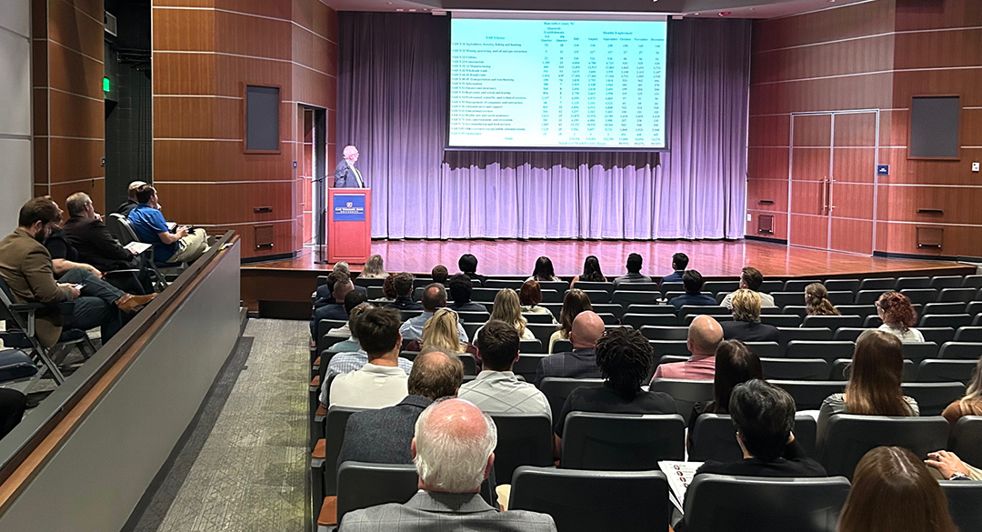 Long-time ETSU Economics Professor John Smith opened the half-dozen 20-minute presentations by focusing on the economic impact of the storms, particularly effects that occur when the level of economic activity within a special region like ours changes.